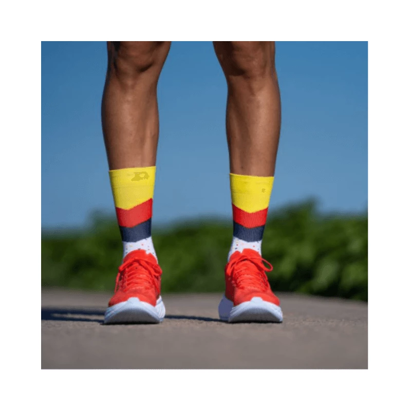 Calcetín unisex de running con una mayor sujeción en la zona del tobillo y metatarso. Tiene un nivel de compresión medio que ayuda a la circulación sanguínea y reduce la inflamación en carreras de mayor duración. El talón y la puntera están fabricadas en rizo para minimizar el impacto y crear una mayor sensación de confortabilidad. Además, previene y evita la aparición de ampollas.